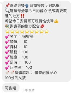 共浴/戴套做/無套吹(深喉嚨)/親嘴/69/按摩/奶炮/舔蛋/胸磨臉/絲襪(客自備)
